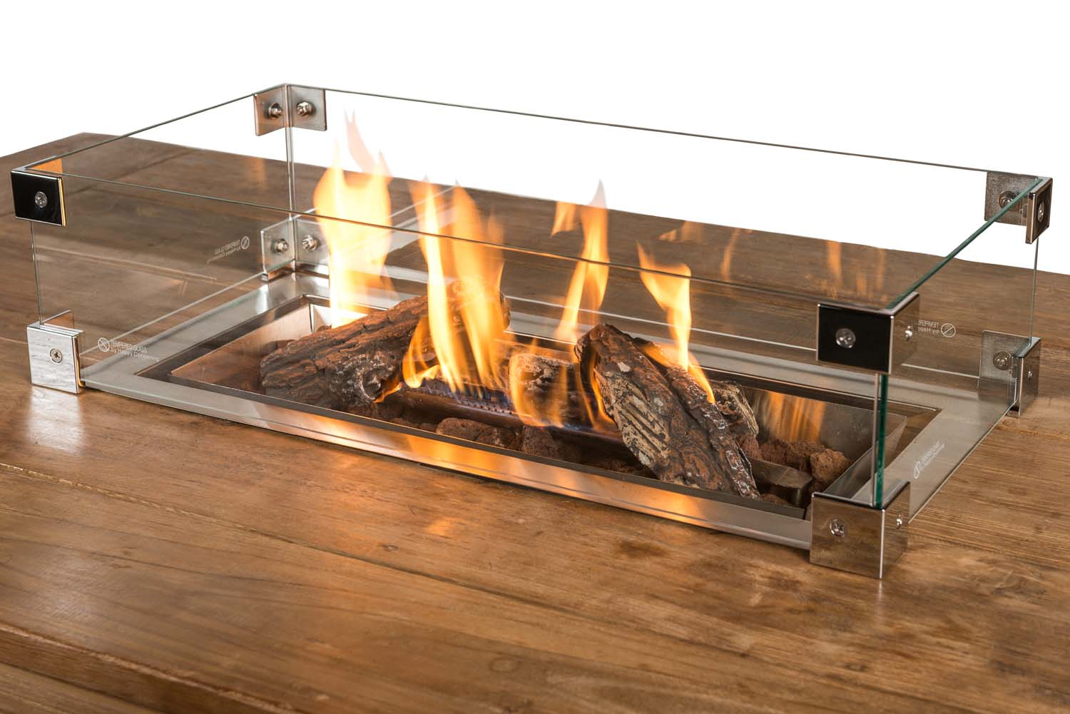 Hvis innsettbar gassbrenner skal felles ned i bord som er av brennbart materiale skal sikkerhetsglass brukes.