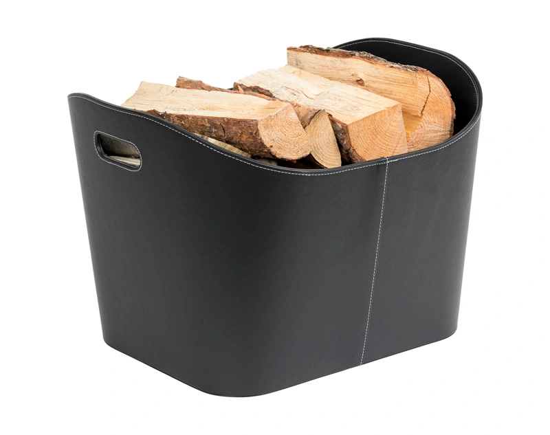 Flott vedkurv i kunstlær. Kurven rommer mye ved og har to solide håndtak.