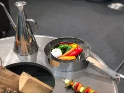 Rustfri stekeringer for grilling på BBQ-ring. Holder ingrediensene på plass mens du tilbereder og griller. Maten/ingrediensene har direkte kontakt med grillringen.