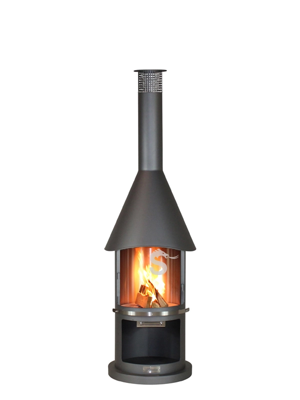 En komplett utepeis i rustfritt stål som også kan brukes som grill. Tidløst og klassisk design. Peisen leveres komplett i en sikker transportkasse. Det eneste som må gjøres er å gjøre å feste røykrøret. Peisen er av høy tysk kvalitet. Dobbel bakvegg med isolasjon i brennkammeret gir svært gode forbrenningsegenskaper og lang levetid uten vedlikeholdskostnader. Dobbel kappe med avtakbar ytre røykhette hindrer misfarging og begrenser utvendig temperatur. Pipehatt med gnistfanger.