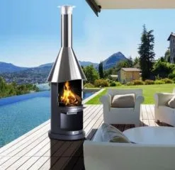 En komplett utepeis med grillmuligheter. Produsert i rustfritt stål med et tidløst og klassisk design. Peisen leveres komplett i en sikker transportkasse. Det eneste som må gjøres er å gjøre å feste røykrøret. Peisen er av høy tysk kvalitet. Den har svært gode forbrenningsegenskaper og lang levetid uten vedlikeholdskostnader. Dobbel kappe med avtakbar ytre røykhette hindrer misfarging og begrenser utvendig temperatur. Pipehatt med gnistfanger.
