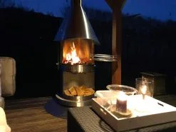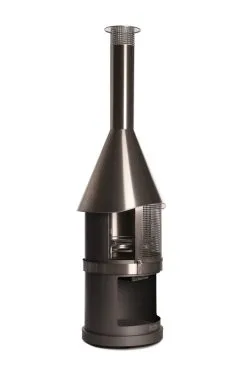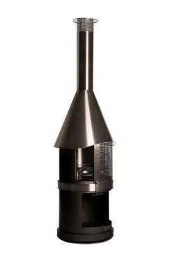 En komplett utepeis og grill i rustfritt stål, i et tidløst og klassisk design. Peisen leveres komplett i en sikker transportkasse. Det eneste som må gjøres er å gjøre å feste røykrøret. Peisen er av høy tysk kvalitet. Den har svært gode forbrenningsegenskaper og lang levetid uten vedlikeholdskostnader. Dobbel kappe med avtakbar ytre røykhette hindrer misfarging og begrenser utvendig temperatur. Pipehatt med gnistfanger.
