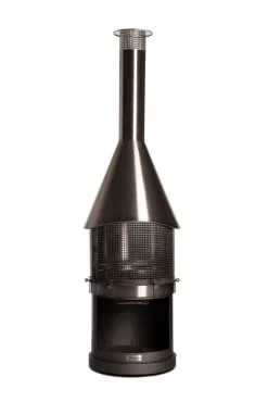 En komplett utepeis og grill i rustfritt stål, i et tidløst og klassisk design. Peisen leveres komplett i en sikker transportkasse. Det eneste som må gjøres er å gjøre å feste røykrøret. Peisen er av høy tysk kvalitet. Den har svært gode forbrenningsegenskaper og lang levetid uten vedlikeholdskostnader. Dobbel kappe med avtakbar ytre røykhette hindrer misfarging og begrenser utvendig temperatur. Pipehatt med gnistfanger.