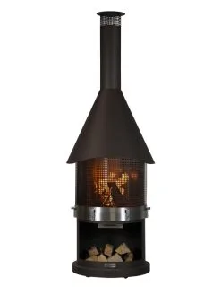 Dvs at den tåler å stå ute i all salgs vær. - Gnistdør i rustfritt stål, som kan dreies 360° rundt peisen.