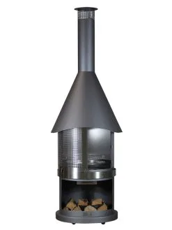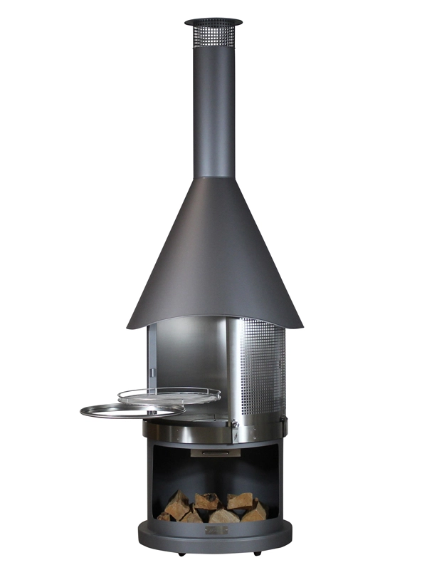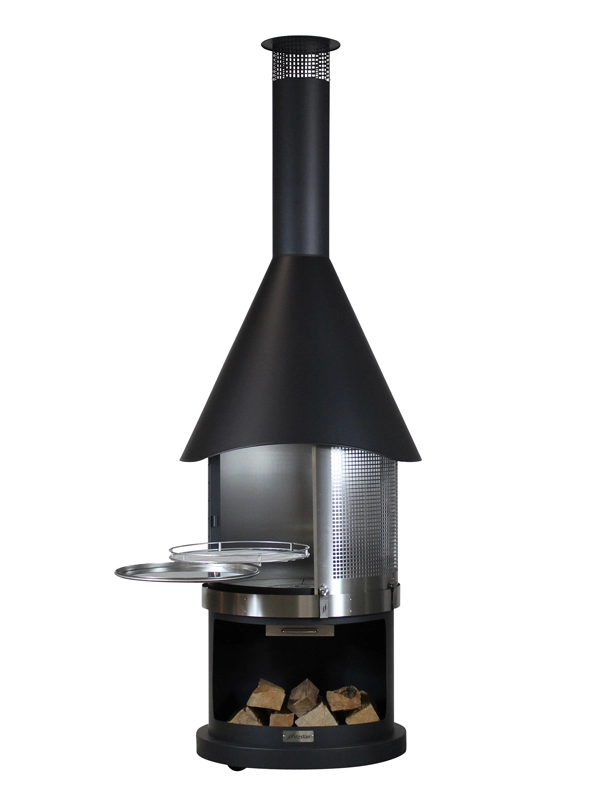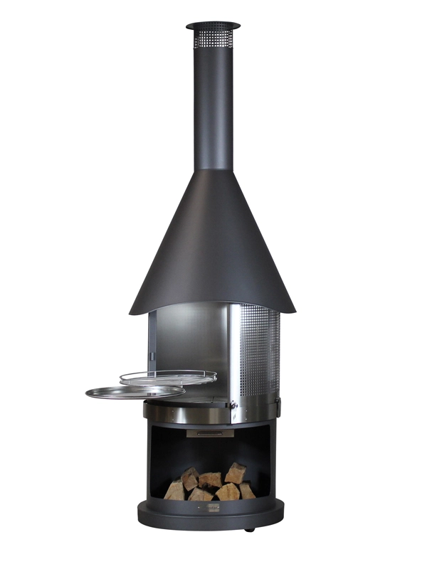 En komplett utepeis og grill i rustfritt stål, i et tidløst og klassisk design. Peisen leveres komplett i en sikker transportkasse. Det eneste som må gjøres er å feste røykrøret. Peisen er av høy tysk kvalitet. Den har svært gode forbrenningsegenskaper og lang levetid uten vedlikeholdskostnader. Dobbel kappe med avtakbar ytre røykhette hindrer misfarging og begrenser utvendig temperatur. Pipehatt med gnistfanger er standard.