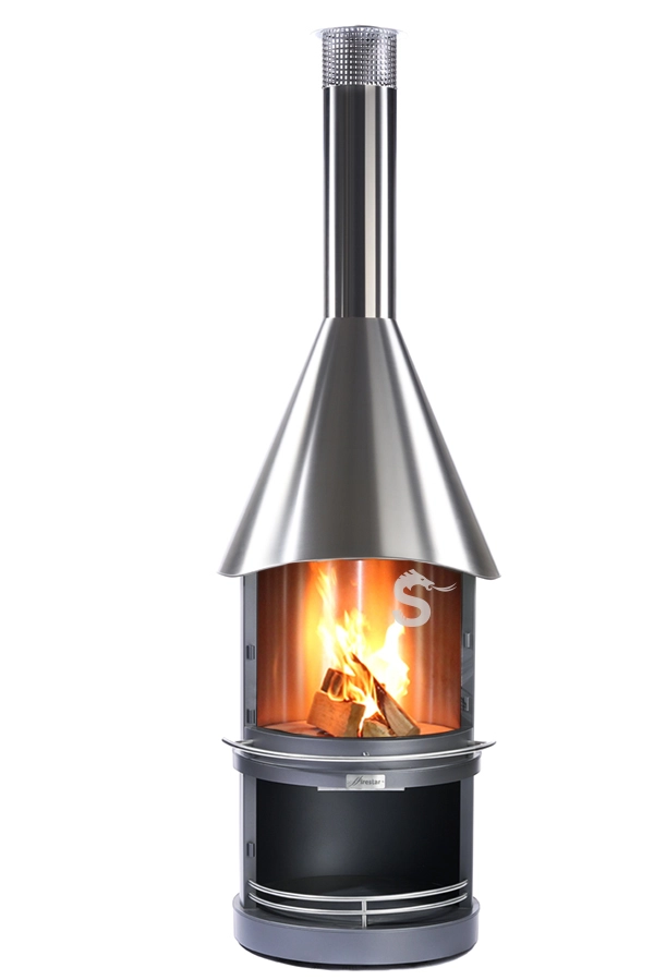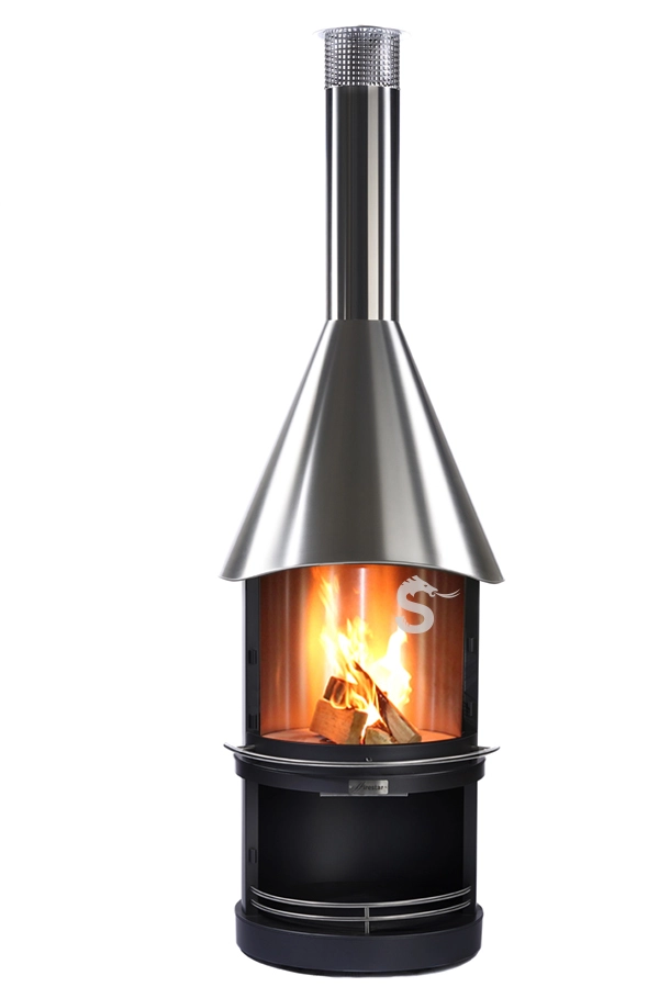 En komplett utepeis med grillmuligheter. Produsert i rustfritt stål med et tidløst og klassisk design. Peisen leveres komplett i en sikker transportkasse. Det eneste som må gjøres er å gjøre å feste røykrøret. Peisen er av høy tysk kvalitet. Den har svært gode forbrenningsegenskaper og lang levetid uten vedlikeholdskostnader. Dobbel kappe med avtakbar ytre røykhette hindrer misfarging og begrenser utvendig temperatur. Pipehatt med gnistfanger.
