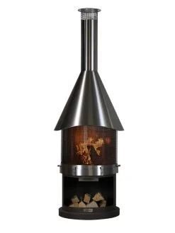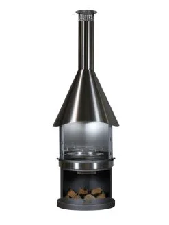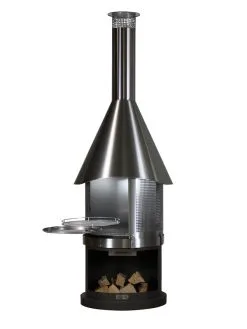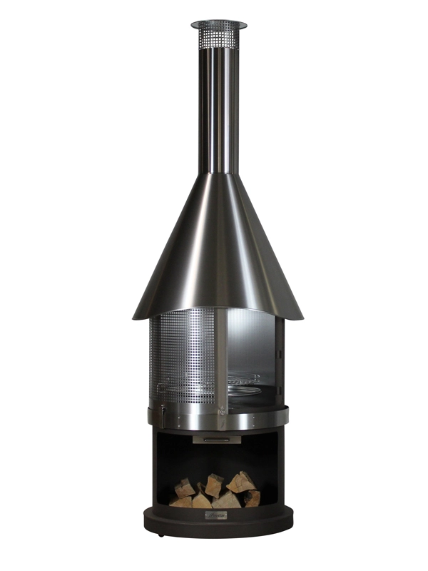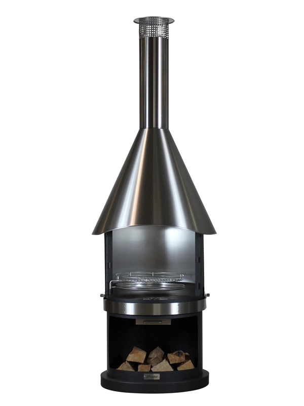 En komplett utepeis og grill i rustfritt stål, i et tidløst og klassisk design. Peisen leveres komplett i en sikker transportkasse. Det eneste som må gjøres er å feste røykrøret. Peisen er av høy tysk kvalitet. Den har svært gode forbrenningsegenskaper og lang levetid uten vedlikeholdskostnader. Dobbel kappe med avtakbar ytre røykhette hindrer misfarging og begrenser utvendig temperatur. Pipehatt med gnistfanger er standard.