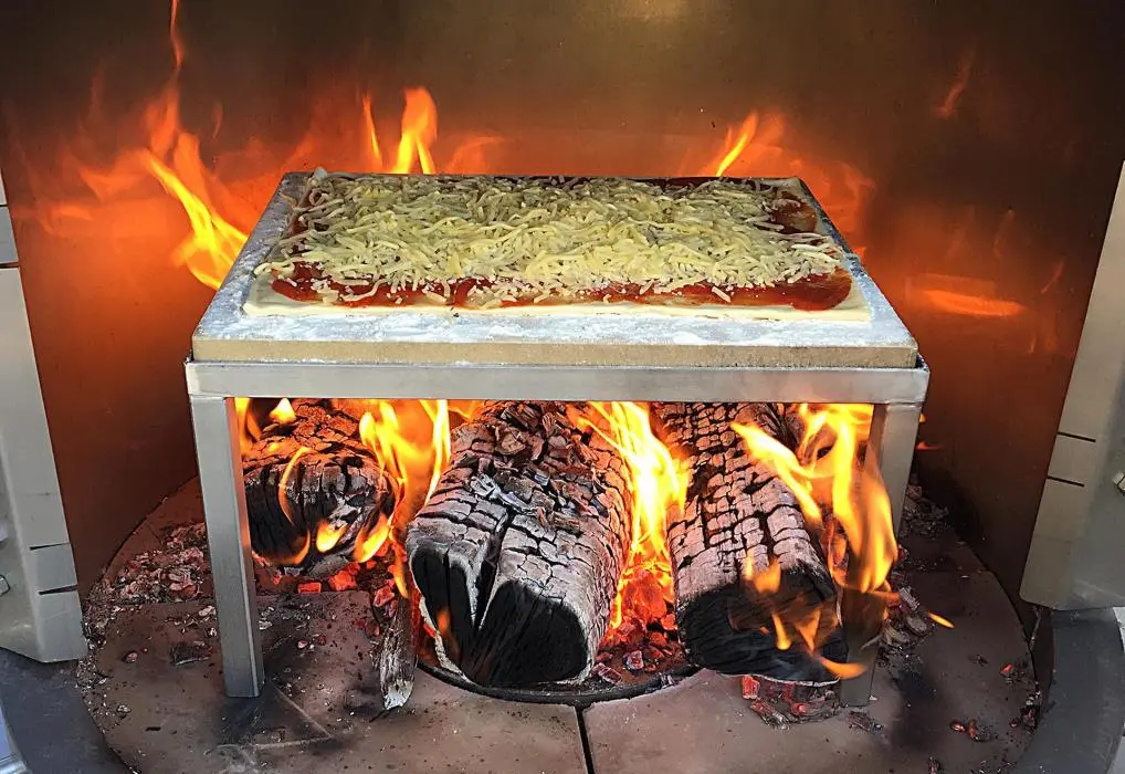 Smart stekeplate på stativ i rustfritt stål. Anbefales å bruke sammen med 2-delt dør. Stekeplaten er laget i steinmateriale som er godkjent for matlaging.