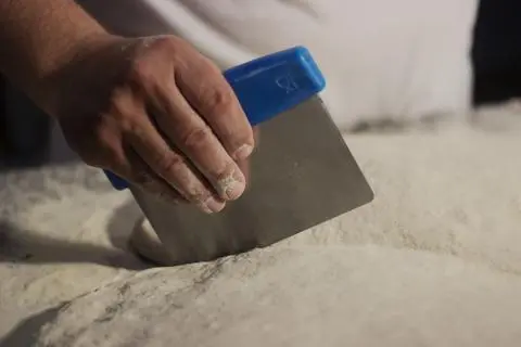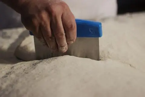 Praktisk deigkutter som kutter deigen lett opp i porsjonsleiver. Deigkutteren har et godt håndtak og sitter godt i hånden.