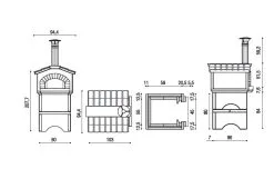 Brennkammeret er laget av spesielt ildfaste materialer med svært høy varmebestandighet. Ytterbekledningen er laget av leire-/marmorblanding med høy varmebestandighet og mekaninsk styrke, alt er ferdig farget i blandingen. Dørbuen er laget i teglsteinsfarget LECA-blanding. Pipen og pipehatten er i rustfritt stål. Ovnen leveres med ståldør med termometer og «Linea Fix» for sammensetting av ovnselementene. Ovnen har plass til 2 pizzaer på 20cm diameter.