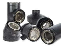 Piperørene er laget i rustfritt stål (indre + ytre rør) og er utvendig pulverlakkert sort.