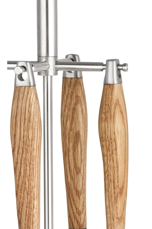 Slanke og elegante verktøy laget med og høy presisjon. Tiltalende, avrundet design levner ingen tvil om kvalitet og holdbarhet. Settet inkluderer ildrake, børste, spade og frittstående stativ.