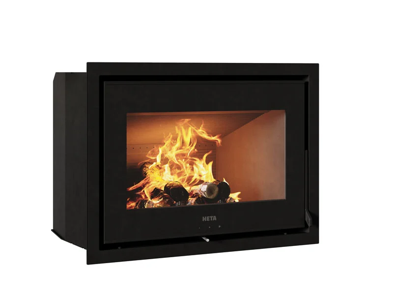 HETA sin Vista peisinnsats er en moderne og kompakt innebygd ovn, med et bredt og attraktivt flammebilde. Vista reguleres enkelt via et enkelt håndtak i bunnen, som gir deg full kontroll over forbrenningsluften, slik at du kan nyte de rolige flammene gjennom de store glasset i fronten.