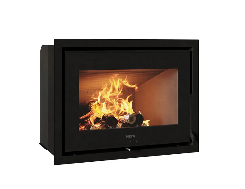 HETA sin Vista peisinnsats er en moderne og kompakt innebygd ovn, med et bredt og attraktivt flammebilde. Vista reguleres enkelt via et enkelt håndtak i bunnen, som gir deg full kontroll over forbrenningsluften, slik at du kan nyte de rolige flammene gjennom de store glasset i fronten.