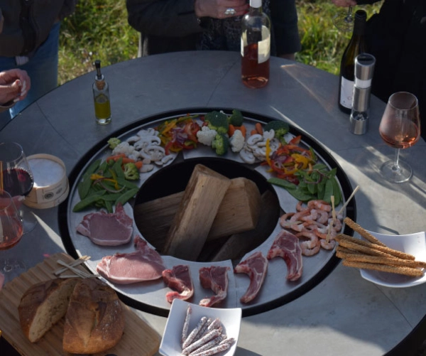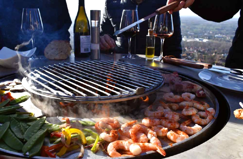 Grill-/ stekeflaten er laget av rustfritt stål i matkvalitet og har en utvendig diameter på 65 cm. Det er også plass til et grillstativ i midten. (ekstrautstyr). Denne platen brukes også som feste til bioetanolbrenner.