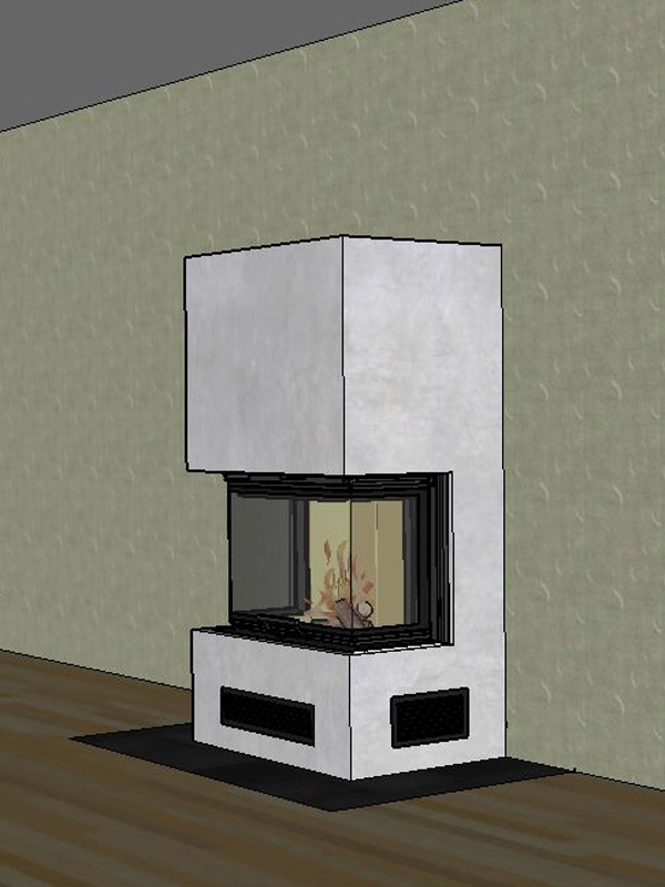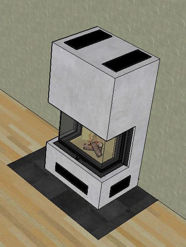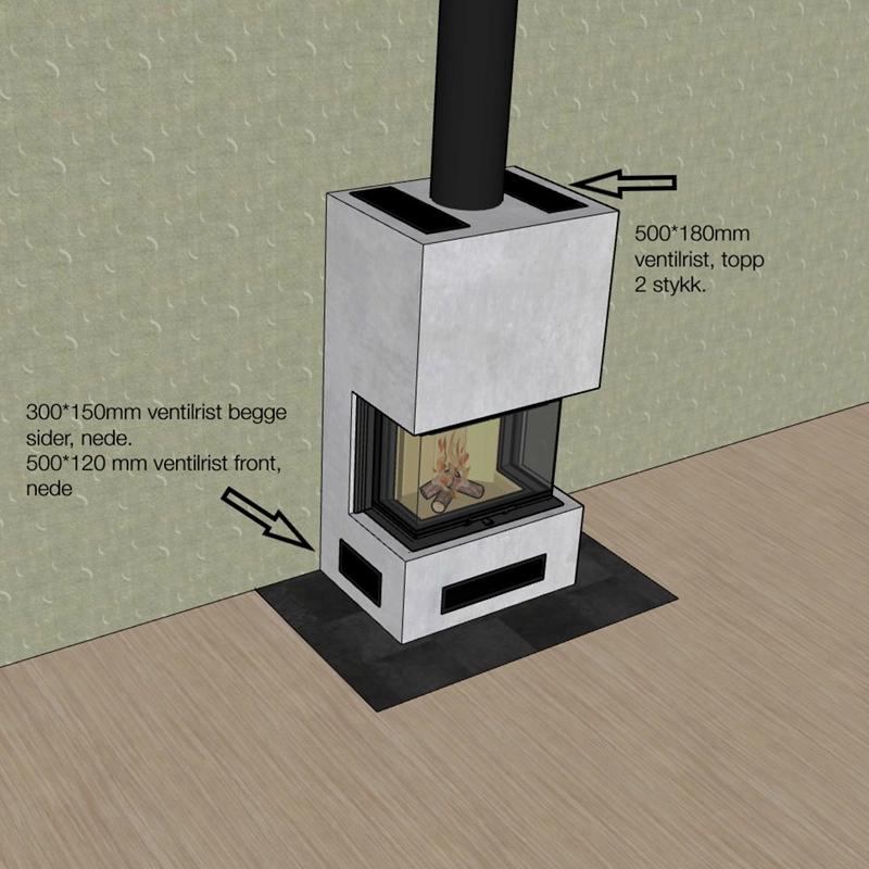 Vi har satt sammen en peis med målsatte tegninger, enkel byggeskisse og tilhørende deler. Peisen er tenkt ferdig med pussede plater, som kan males eller brukes med moderne ubehandlet betong-look.