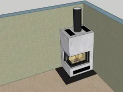 Vi har satt sammen en peis med målsatte tegninger, enkel byggeskisse og tilhørende deler. Peisen er tenkt ferdig med pussede plater, som kan males eller brukes med moderne ubehandlet betong-look.