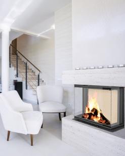 Impression C 2g L 80.61.34.21 er en eksklusiv peisinnsats med ekstra høyt glass på 3 sider for maksimal nytelse av flammebildet.