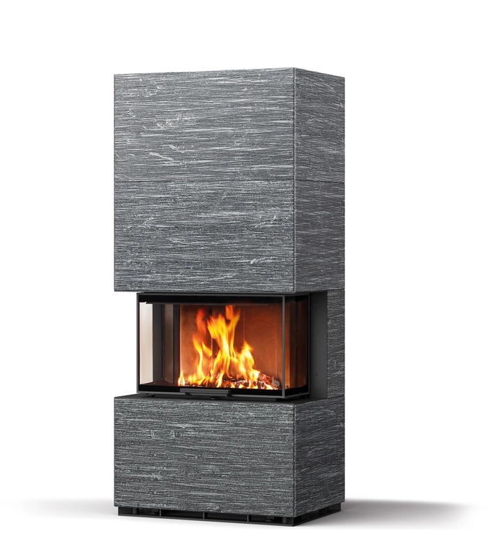 Modellen Lako er en del av Tulikivis eksklusive Pielinen-kolleksjon, og en premium peis med hevedør og varmelagring som overgår det meste.