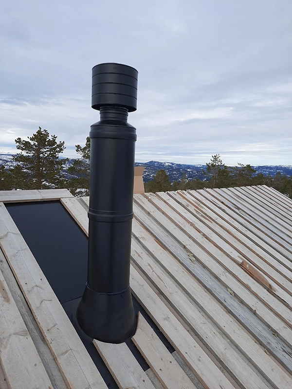 A) Stålpipepakke for utvendig pipe m/veggjennomføring