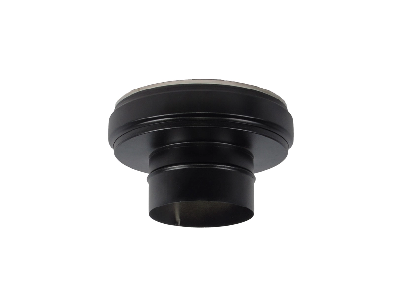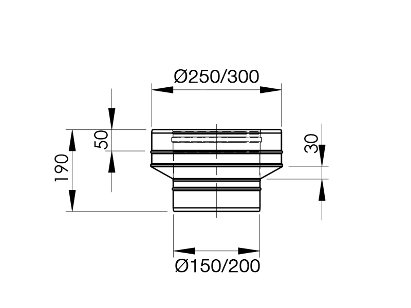 Kobling m/låsebånd uiso/iso (DW). Pipedelen er laget i rustfritt stål (indre + ytre rør) og er utvendig pulverlakkert sort. Brukes/monteres som overgang mellom uisolert og isolert rør, eksempel ved tilkobling av ildsted.
